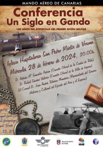 La ermita de San Pedro Mártir acogerá, mañana miércoles 28 de febrero, a partir de las 20.00 horas, la conferencia titulada Un siglo en Gando: 100 años del aterrizaje del primer avión militar.
