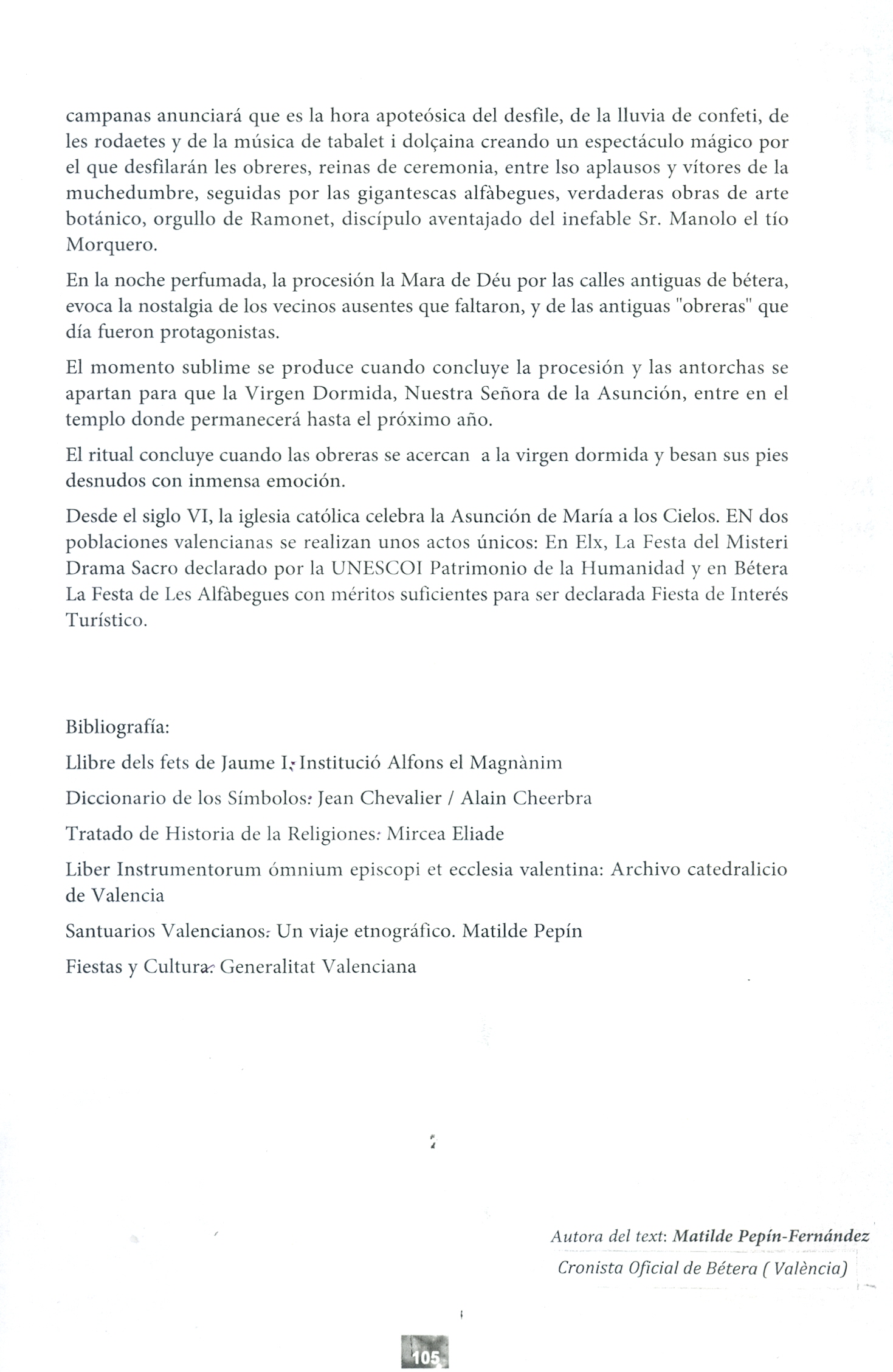 POR MATILDE PEPÍN FERNÁNDEZ, CRONISTA OFICIAL DE BÉTERA (VALENCIA)