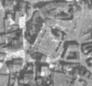 En esta segunda imagen, se han dibujado los dos perímetros observados en la fotografía de 1949, así como los cubos de las esquinas, siendo esas dimensiones las que seguramente tendrían los perímetros exterior e interior de la fortaleza12. De la zona destinada al foso no tenemos vestigios por las construcciones actuales, aunque la actual calle Alta pudo formar parte de esa zona debido al notable desnivel respecto al castillo.