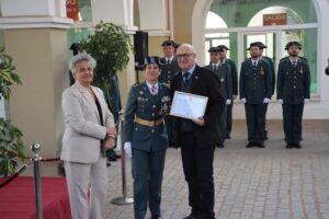 Se ha comenzado con la lectura de un extracto de los decretos fundacionales del Cuerpo, para proceder posteriormente a reconocer la labor de diversos guardias civiles, imponiéndoles diversas condecoraciones, destacando entre ellas las concedidas por los méritos reunidos a raíz de los servicios prestados durante la DANA. A continuación, se ha hecho entrega de reconocimientos a personal veterano, así como varias menciones honoríficas a personal civil que ha destacado por su estrecha colaboración con la Benemérita, como la Fiscal Jefe Dª María Isabel Gómez López y el Cronista Oficial de la ciudad, D. Miguel Romero Saiz.