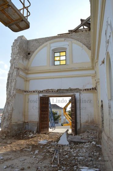 Pasaron once años con la iglesia cerrada hasta que el día 6 de julio de 2015, se procedió a las obras de demolición de las partes que no pudieran mantener su estructura. Se derribó parte del antiguo edificio, quedando en pie solamente la torre y campanario, además del frontal de la fachada principal. En cuanto a los trabajos arqueológicos, comenzaron el día 10 de enero de 2016, comenzando los trabajos de campo con la exhumación de los restos óseos de los cadáveres, ya fueran de Ontígola o de Aranjuez, que estaban enterrados desde siglos.