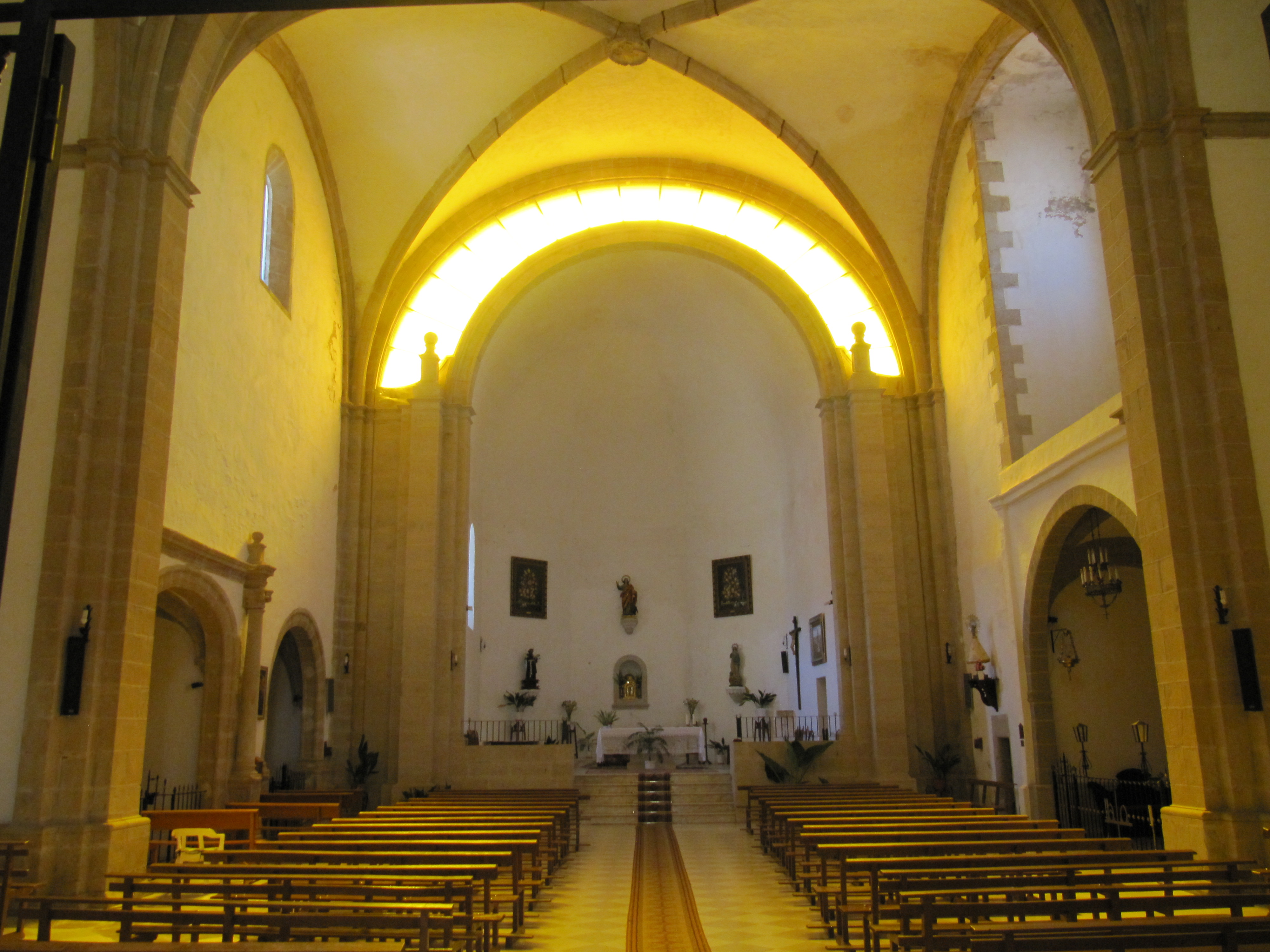 Por tanto, corresponde al siglo XV una primera fase la construcción del templo, destacando la fachada de los pies con arco carpanel enmarcado en alfiz y decoración de tracería gótica. A ambos lados de la puerta hay dos inscripciones pertenecientes a una tumba fragmentada procedente del interior de la iglesia: “HE SV HIIO/ FALLESCIO/ EL PADRE A 8/ DE NOVIEN/BRE DE 1563 I EL HIIO A 3 DE NOVIENBRE/DEL 1560/ ESTAN EN ESTA SEPULTURA Y /SUS HEREDEROS”. En esta fachada se conservan los restos de una inscripción hebrea.