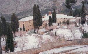 Al término de la empinada cuesta se puede observar dos pequeñas torres de ladrillos vistos que señalan el lugar donde se encuentra el viejo Convento de sencilla construcción, que los propios moradores nunca quisieron mejorar para tener mayor recogimiento y santidad en la sencillez y pobreza del mismo, siendo sólo esas torres las que mejoran la imagen actual del mismo.