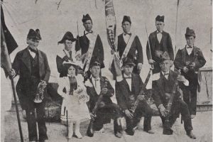 En la fotografía de la Comparsa de Cristianos de 1899, podemos observar al capitán y abanderado (con sus bandas correspondientes), sargento (con su cornetín de órdenes y una lanza partesana como banderín), paje (lujosamente vestida, con su rodela y bastón), y arcabuceros, herederos de las milicias del siglo XVII.