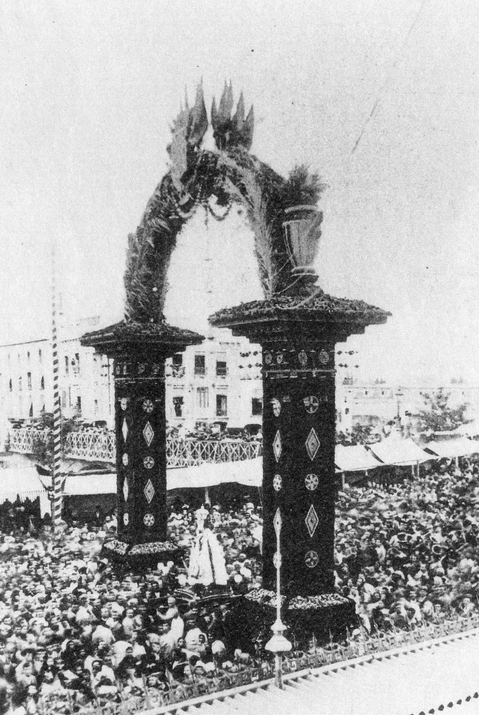 Además, también se cumple el mismo aniversario de la conclusión del Puente Viejo y, por si no querían caldo, los noventa años desde que se coronó sobre aquél a la Fuensanta. ¿Quieren otro? ¡Ea! Este año es el 90º aniversario desde que la Peligros salió en procesión la última vez. Y es posible que fuera la primera. Lo hizo en diciembre de 1929, desde la Catedral, para conmemorar el dogma de la Inmaculada.