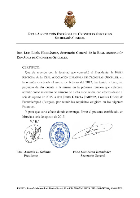 POR JESÚS GARCÍA JIMÉNEZ, CRONISTA OFICIAL DE FUENTELCÉSPED (BURGOS)