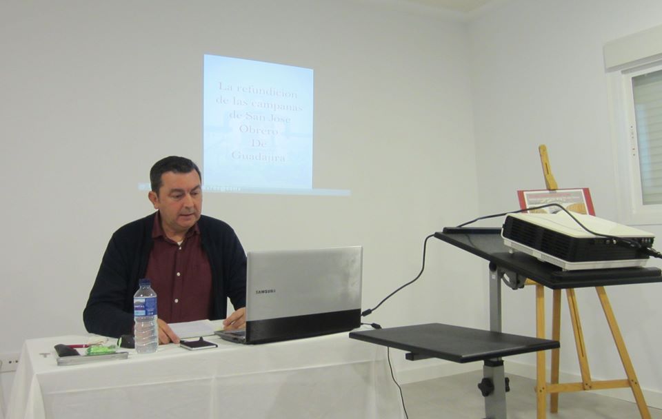 Jerez Linde centró su exposición en la evolución constructiva de la iglesia parroquial de San José Obrero de esta localidad, proyectada por el arquitecto Gonzalo Echegaray Comba, en sus distintas fases, junto con la ampliación de su torre-campanario, realizada en 1962. Campanas de 1957 y 1984, refundidas en 2019. De los talleres de Gabriel Rivera (Montehermoso) y Fernando Villanueva Sanz (Villanueva de la Serena) que responden, dos de ellas a los nombres del patrón de Guadajira: San José Obrero y las otras dos con las advocaciones de Ntra. Señora del Pilar y Ntra. Señora de las Mercedes.
