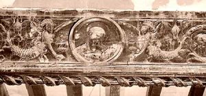 Paseando por Romancos, el viajero se encuentra a gusto, porque encuentra limpio y en orden el entorno. Hay una plaza mayor enorme, con fuente y caserones de traza popular y entrañable. Abajo, junto a las huertas, encontramos la iglesia parroquial, que está dedicada a Nuestra Señora de la Concepción. Es un interesante ejemplar de arquitectura religiosa, construido en la primera mitad del siglo XVI. Su fuerte fábrica de sillar y sillarejo muestra dos puertas orientadas, a norte y a poniente. Esta última se compone de un sencillo arco de tres lóbulos, redondeados, sostenidos por jambas de junquillos de pequeños capiteles de decoración vegetal. Pero la puerta principal, orientada al norte, es más llamativa y vigorosa. Tal como vemos en la fotografía adjunta, que nos da una idea de su aspecto solemne y peculiar, trátase de todo un cromo de arte antiguo: se compone de gran arco conopial ornado con cardinas, florones, etc., muy en la tradición del gótico final o isabelino.