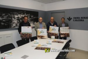 En la presentación José Manuel Puchol y Eladi Grangel acompañaron al presidente y director de la Caixa Rural alcorina, José Luis Esteban y Juan Manuel Nogueroles, respectivamente, quienes informaron que a partir de esta semana ya se puede adquirir gratuitamente el almanaque en las oficinas de la estimada entidad que se ha realizado en tamaño grande y en el de sobremesa.