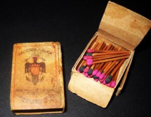 Los fósforos, cerillas, labor, o mixtos, como han sido llamados en España, llegaron en torno a 1838, pues en nuestro país no había experiencia fosforera, si bien estaba autorizada su venta por Real Orden de 1862, aunque un intrépido aragonés Emilio Pascasio Ruiz Lizarbe, comenzó a fabricarlos en la localidad zaragozana de Tarazona de Aragón fundando la Fosforera del Carmen, que será conocida como la “Catedral de los Fósforos”. En 1874 cuando se ha generalizado en España el uso de estos fósforos, la maltrecha situación de la hacienda Pública llevó a la creación de un impuesto transitorio, conocido como impuesto de guerra que recayó sobre la venta de las cerillas justificándolo en tres razones: la índole de esta industria, el gran desarrollo de su comercio y la forma particular en que se ejercía. A pesar de las quejas de las empresas, se obligaron a entregar a la Hacienda el impuesto anual de 2.050.000 pesetas por mensualidades, algo que resultaron incapaces de cumplir y la Hacienda dispuso la creación de un Monopolio estatal de fósforos, y el mes de enero de 1894 se constituía la Compañía de Cerillas y Fósforos a la que los fabricantes encomendaron la expedición y venta de las cerillas reglamentarias.