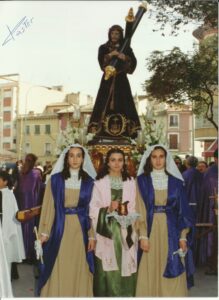 Refiriéndome a las dos jóvenes que dan vida a la Marías y que al igual que la Magdalena, ellas acompañan a la Madre de Cristo en esa trágica mañana de Viernes Santo, también entre otras cosas dije lo siguiente: «La Dolorosa sigue las huellas del Nazareno delante de ella, María Salome y María la de Cleofás, ellas no se han escondido como los apóstoles a es sección de San Juan, ellas están ahí, (Las Marías) que se funden la una con la otra y sin levantar la vista del suelo tratan de vivir el momento que les ha tocado representar.