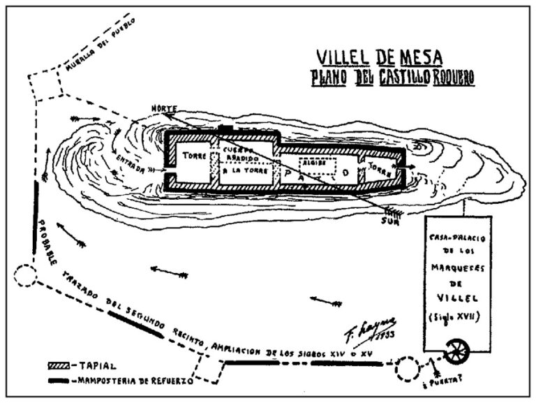 Por el pueblo aún pueden verse restos de la muralla que lo cercó desde el siglo xv. Desde su altura se contempla el lugar de los Castelletes, alzado en un alto sobre la orilla derecha del río, que se supone son los restos del antiguo y poderoso castillo de Mesa, mandado derribar por los Reyes Católicos. También en poderosa situación, y puesto que el valle del Mesa es estrecho y de obligado paso entre Aragón y Castilla, se constituyó en un paso fronterizo clásico, debiendo estar el área fronteriza muy vigilada durante siglos. De ahí que no debe extrañarnos que en el mismo valle de Villel hubiera también castillo en Mochales, río arriba, y en Algar, río abajo. Eran todos ellos atalayas o castilletes fortificados de vigía.