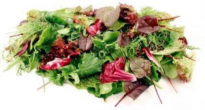 .- En una fuente de servicio se dispone un lecho de MEZCLUM , procurando que las verduras estén muy frescas y muy bien lavadas.