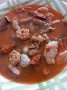 Y así, «entre espinas y entre flores» , como escribieron los hermanos Quintero , se nos ocurrió guisar FABES CON MERLUZA Y MARISQUIN. Escribo marisco en diminutivo porque lo comprado era «tirando a pequeño» , pero muy sabroso.