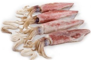 .- CALAMAR PATAGÓNICO (Loligo patagonicus, Loligo gahi , Doryteuthis gahi) , capturados en mares de América del Sur. Se importa congelado y en nuestras pescaderías se vende ya «procesado» ; es decir, descongelado y con apariencia de fresco. El de buena calidad es muy interesante. Su precio oscila entre los 5 y 7 euros/kg.