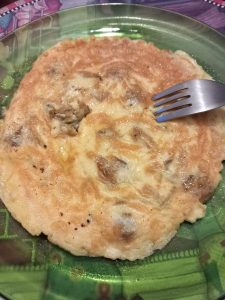 Además de este «picoteo » , en CASA PRUPO experimentamos otro destino : LA TORTILLA. Esto hicimos : Abierta la lata (lógicamente) , escurrimos las almejas y las bautizamos con un «asperges me , Domine» de vino blanco («unes pingarates») Mezclamos las almejas con dos huevos grandes batidos y cuajamos una tortilla ligeramente jugosa No añadimos sal pues ya la aportaban las almejas. ¿ Y cómo resultó la experiencia ?