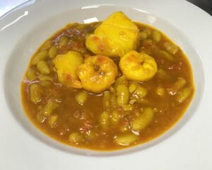 Lo avalan los premios que ya han alcanzado desde su apertura en 2019. Y cómo estamos en tiempos cuaresmales «de vigilia» , nos brindan esta recetina de VERDINES CON BACALAO Y GAMBAS : Tras un remojo en agua durante 12 horas , cuezan las alubias en agua sin sal. Escúrranlas y reserven. En una cazuela pochen un pisto al modo acostumbrado. Añadan el bacalao ( desalado y triceado) . Sumen un poco de caldo y dejen cocer a fuego moderado durante unos 20 minutos. Coloreen con un poco de pimenton Retiren el bacalao y junto con colas de gambas , denles una fritura al ajillo en sartén con aceite. Lleven esta fritura y las verdinas a la cazuela del pisto. Rectifiquen de caldo y de sal. Si gustan , aromático con un chorro de vino blanco. Terminen la cocción para homogeneizar sabores. Sirvan muy caliente.