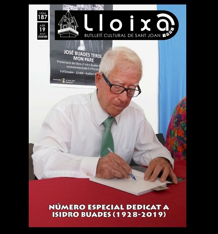 Alfredo Campello se encargó de presentar el resultado del trabajo realizado el cual ha contado con un gran número de colaboración. Se trata de un número monográfico de 20 páginas a todo color en el que varias personas han escrito unas palabras en recuerdo de Isidro. Son ocho páginas más de las habituales, pero bien podrían haber sido 40. Los miembros de Lloixa se disculparon por no poder incluir todos los textos y fotografías recibidas. Las páginas centrales del boletín recogen en un listado todas las colaboraciones de Isidro en la revista desde el número 2 hasta el 184, dejando fuera sus Cuentos de la Huerta y algunos de sus poemas, puesto que harían interminable la lista.