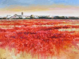 (Montijo según el pintor José Augusto de Paula Leitao (Lisboa) 1960. Una obra de buen gusto por el arte, la luz, armonía, color y sentimiento).