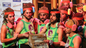 Los enmallaos sacan a las tablas un ejemplar de ‘Huelva Información’. / Reportaje gráfico: Alberto Domínguez.
