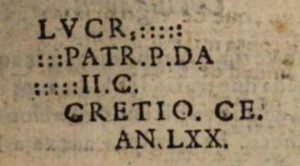 LVCR,::::: :::PATR.P.D.A :::::II.C. CRETIO.CE. AN.LXX
