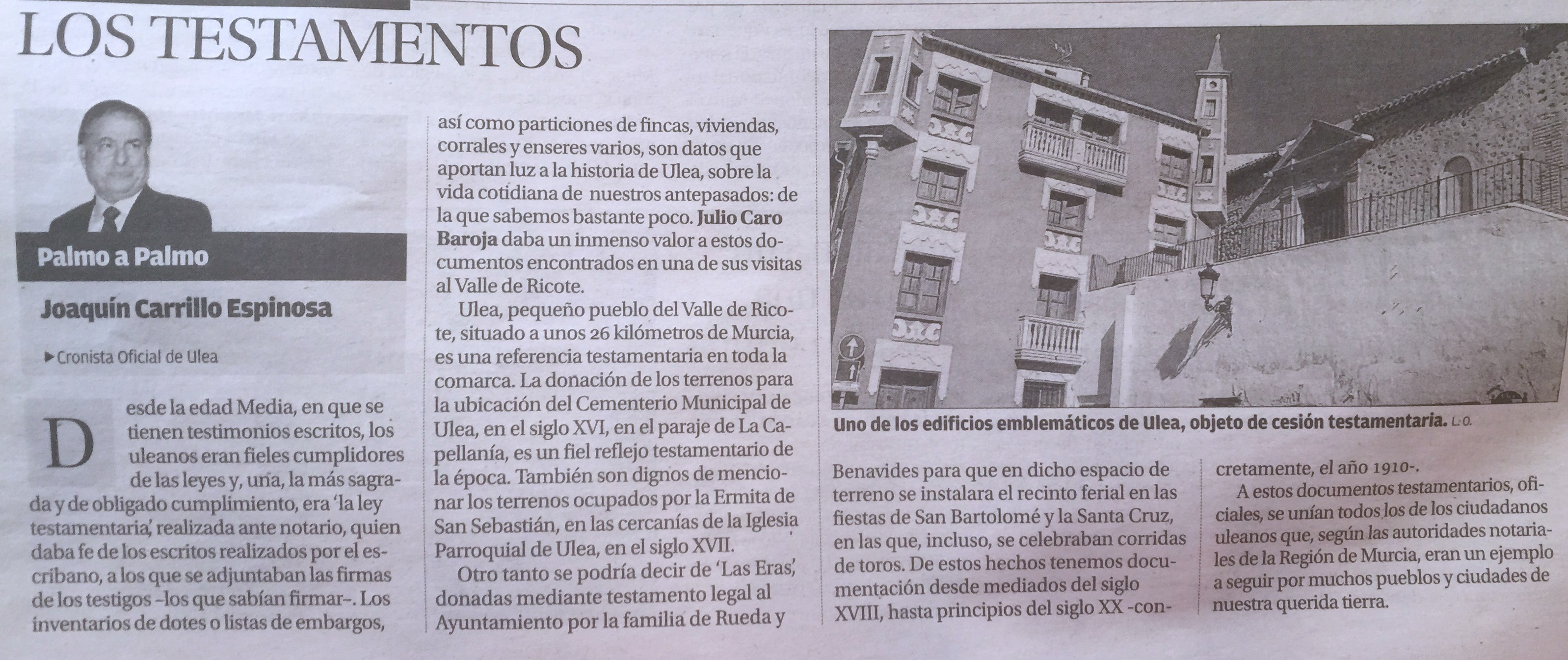 POE JOAQUÍN CARRILLO ESPINOSA, CRONISTA OFICIAL DE ULEA (MURCIA)
