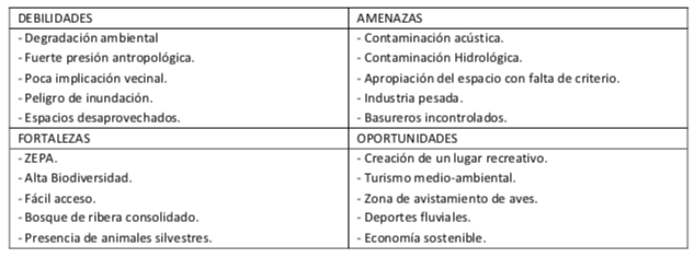 Les dejamos un análisis DAFO sobre el río para tener un primer acercamiento.