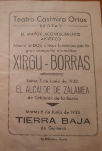 Hoy, 5 de julio de 1933, hace pues 90 años que estrenó en el “Teatro “Casimiro Ortas” de la villa de Las Brozas la obra de Calderón de la Barca “El alcalde de Zalamea” y al día siguiente “Tierra baja”, del dramaturgo tinerfeño Ángel Guimerá.