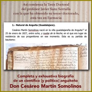 En este caso, ha obtenido el Grado Académico de Doctor en Farmacia con una biografía sobre don Cesáreo Martín Somolinos, farmacéutico de Anguita.