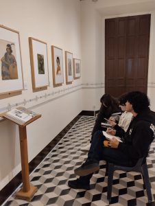 Hoy hemos tenido la visita de los alumnos de 1º y 2º del bachillerato de artes del I.E.S. Álvarez Cubero, que bajo la supervisión de sus profesores, José Luis Encabo y Francisco Javier Pacheco, han estado tomando apuntes de los cuadros de Adolfo Lozano Sidro. Una alegría ver las galerías de este museo llenas de gente joven, tan entusiasmados con el arte. Seguro que llegarán lejos.