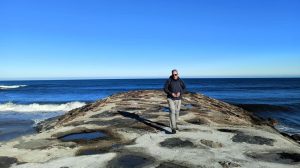 Parece que camino por la cubierta de un submarino de camuflaje, o que mido a pasos el lomo de un cachalote varado, pero se trata de la Barra, en la punta occidental de la desembocadura del Navia.