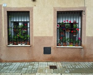 Ayer enfrascado en tareas cuarteleras preliminares a las fiestas de MyC, aparqué delante de uno de esos puntos en los que por lo general no deparamos, haciendo verdad aquello de «mirar pero no ver». Durante segundos me detuve ante un pequeño espectáculo urbano: unas sencillas ventanas cuajas de geranios en flor y otras planta ornamentales.
