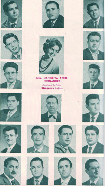 El surco abierto en la fecunda tierra festera caravaqueña por los héroes del 59, recibió pronto, como se sabe, la semilla de otras cabilas que crecieron con inusitada rapidez en el seno del Bando Moro, como fueron los Rifeños, los Halcones Negros y los Dragones Rojos a quienes hoy me refiero, nacidos al amparo de la ilusión de un grupo de amigos, capitaneados por Román Vélez, que solían reunirse en la cafetería Dulcinea compartiendo tertulia con Francisco Medina, entonces conocido como Paco el de Dulcinea y luego como Paco Liceo. El grupo inicial, comandado, como digo, por Román Vélez, estuvo formado por el mencionado Francisco Medina, el Gali, Pepe Carrasco, Antonio Vacas, José Ansón, Manolo Lag, Pepe Molina y Eduardo Espa entre otros que el lector identificará en la fotografía de grupo que ilustra este texto.
