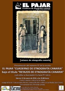 La Asociación Cultural Pinolere, de Tenerife, Premio Canarias de Cultura Popular, presenta este viernes, 12 de enero, el último número del Cuaderno de Etnografría El Pajar, correspondiente al mes de diciembre de 2017 y que lleva por título ‘Retazos de Etnografía Canaria’.