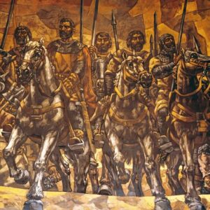 Seguimos en Burgos, para mostraros estas fantásticas pinturas. ¿Alguien que las reconozca o sepa dónde están? Son unos frescos en la cúpula del Palacio de la Diputación Provincial de Burgos muy especiales. Obra del artista Vela Zanetti de la segunda mitad del siglo XX, ofrecen una visión muy distinta del personaje.