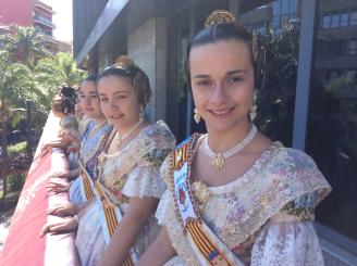 Con las falleras mayores Carmen Raga y Leyre Gallego como protagonistas, el balcón de la planta de alcaldía del Ayuntamiento de Torrent ha recibido hoy a más de un centenar de personas vinculadas a la fiesta y al sector asociativo de la ciudad y la comarca, que han acudido a ver la ‘mascletà’.