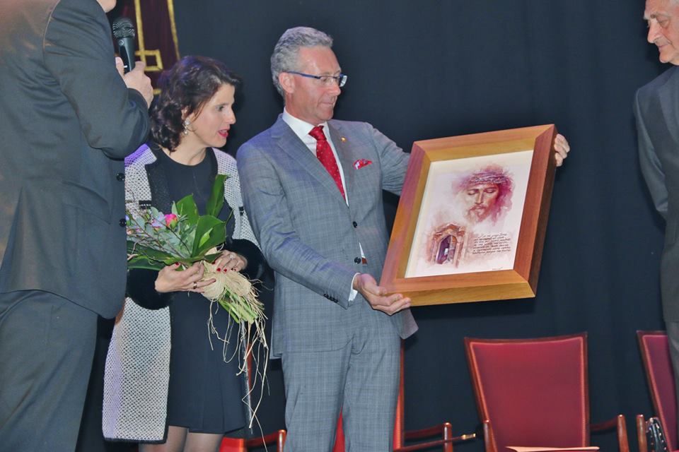Con una prolongada ovación fue despedido el pregonero al finalizar un pregón diferente, cercano en nuestro día a día con reflexiones para meditar en este periodo. Por el Párroco, Alcaldesa y Presidenta de la Agrupación de Cofradías, se le entregó un valioso detalle de una pintura especial y a su esposa Rosa, un ramo de flores. El Hermano Mayor de la Cofradía “Nuestro Padre Jesús Nazareno”, recibió un recuerdo por los 30 años de la Agrupación Musical.