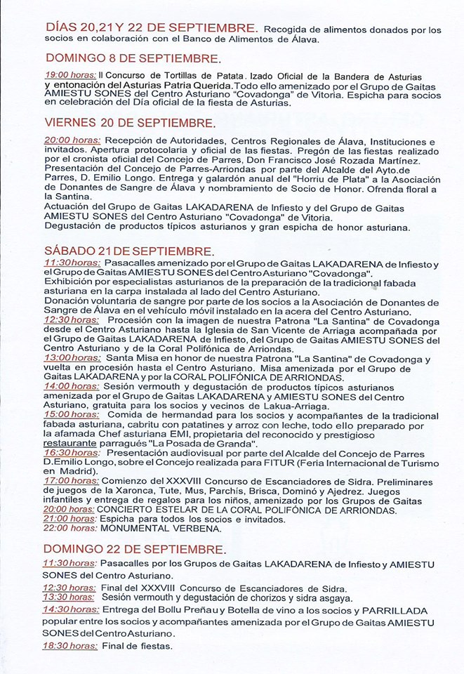 Como primer cronista oficial de la villa y concejo que un día viera nacer al actual Presidente de este Centro Asturiano de Vitoria, Luis Miguel Carrio Laria, debo comenzar agradeciéndole expresamente a él y a su junta directiva la atención de haber pensado en nuestro concejo de Parres para representar las esencias de Asturias en esta capital alavesa y -simultáneamente- sede oficial del Parlamento y del Gobierno de la comunidad autónoma del País Vasco.