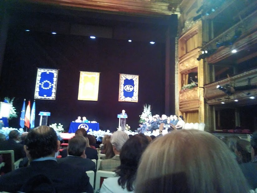 El patio de butacas del Teatro de la Zarzuela estaba completamente lleno, así como algunos palcos. En el salón se encontraban numerosas personas de lo que se llama tripartismo en el mundo del sindicalismo: Gobierno, representantes de las empresas y representantes de los sindicatos españoles. Por allí estaban, entre otras muchas personalidades, la anterior ministra de Trabajo, Fátima Ibáñez; el exsecretario general de la UGT, el extremeño Cándido Méndez y el presidente de las Cámaras de España, el catalán José Luis Bonet, además de la secretaria general de Iberoamérica Rebeca Grynspan y varios ministros de trabajos y embajadores iberoamericanos.