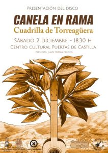 Pues, amigos, el día 2 de diciembre de 2023 estaremos en la presentación del disco de la Cuadrilla de Torreagüera: «Canela en Rama», en el Centro Cultural Centro Cultural Puertas de Castilla de Murcia, a las 18:30 h.
