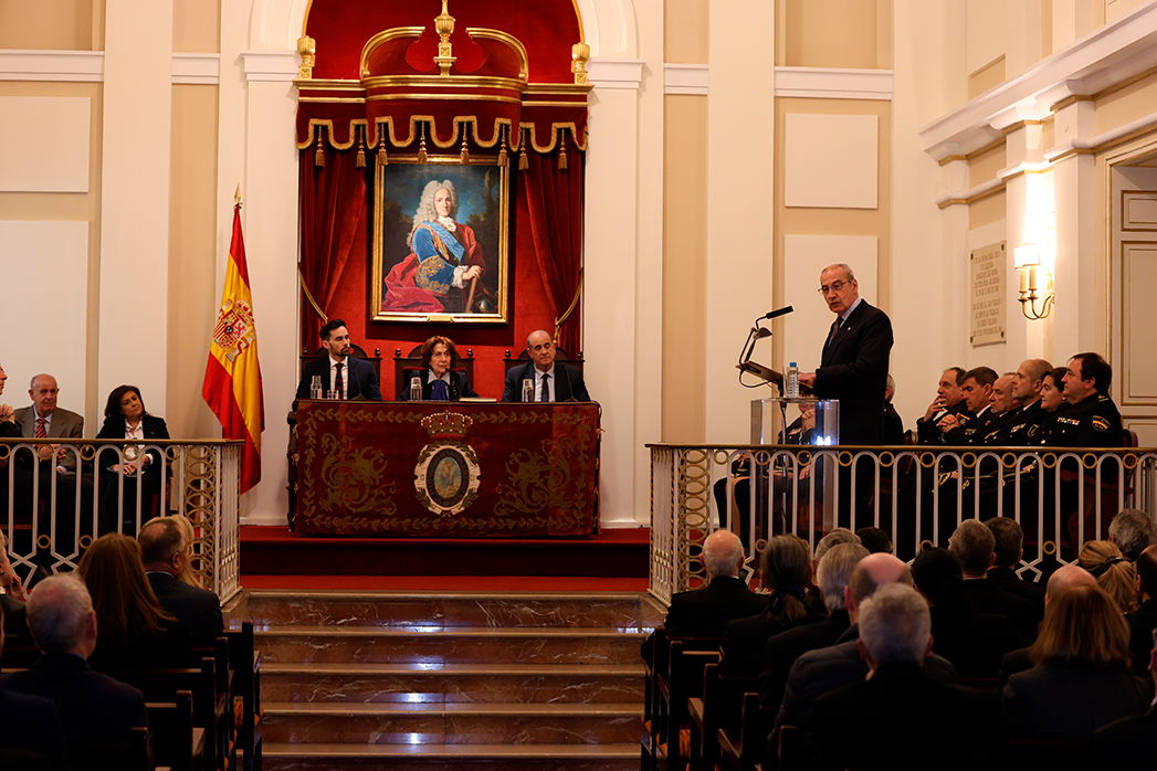 Bajo la presidencia de la directora de la Real Academia de la Historia, Carmen Iglesias, el acto contó con la presencia del secretario de Estado de Seguridad, Rafael Pérez, y del director general de la Policía, Francisco Pardo.