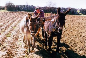 La visión mágica que nos proporciona la imagen del hombre del año dos mil trabajando el campo con la ayuda de vacas negras nos hace recordar, como dice Ramón Grande del Brío (Los animales en el medio rural, 1989), que la conquista de la tierra por obra del hombre no se habría producido de no haber contado éste con la inestimable colaboración de los animales domésticos. Hasta la invención de las máquinas, el transporte y el laboreo de los campos se realizaron mediante el concurso del animal domesticado. Entre el hombre y el animal se forma entonces un todo, en orden a extraer de la tierra el mayor rendimiento, donde se utilizan los servicios del ganado en paridad con los de los miembros de la propia familia del labrador.