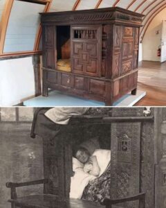 Estas camas cerradas, construidas con madera, ofrecían un refugio cálido al atrapar el calor corporal de quien las ocupaba, creando un ambiente acogedor ideal para las frías noches de la época.