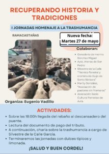 El próximo martes 27 de mayo tendrán lugar en Ramacastañas (Ávila) las I Jornadas Homenaje a la trashumancia con las siguientes actividades.
