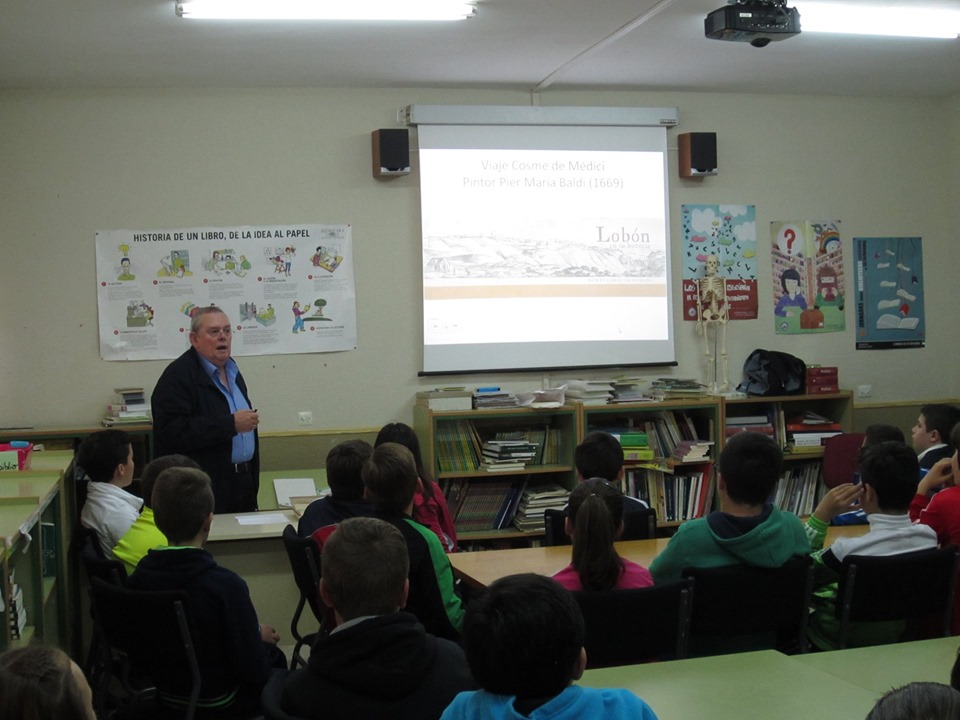Cada vez que me ha tocado hacerlo he disfrutado enormemente. La primera fotografía corresponde a mi participación en la radio escolar del Colegio Público Padre Manjón. Cuatro alumnos: Sara, Lucía, Sergio y Aitor de quinto curso de primaria, coordinados por su profesora, Yolanda Muñoz González, fueron quienes me entrevistaron, en un medio que me apasiona: la radio. Fue en los días finales de febrero de este año. Las otras dos fotografías recogen la visita que hice al CEIP Ntra. Señora de la Asunción de Lobón con motivo de la publicación del libro “Lobón en su historia”, fue en marzo de 2015, junto con un intercambio de alumnos de Lobón y Alemania.