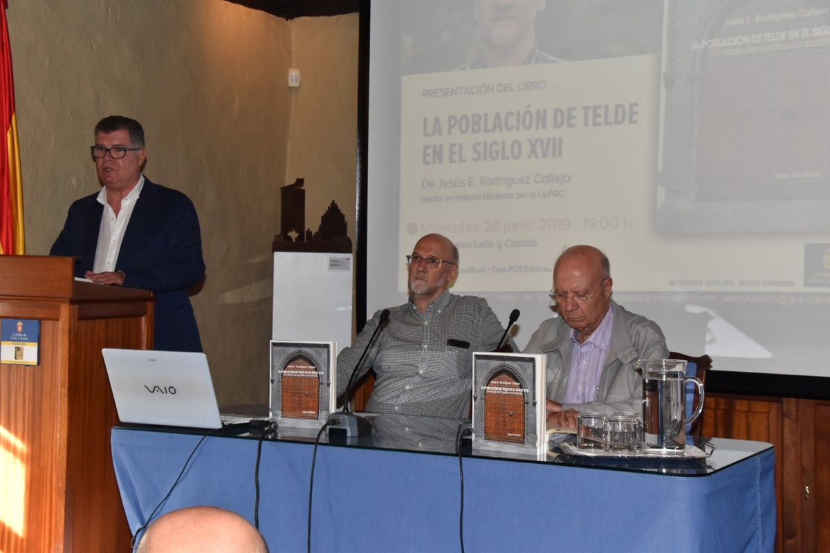 El historiador burgalés Jesús Rodríguez Calleja presentó días atrás en La Casa-Museo León y Castillo su nuevo libro titulado ‘La población en Telde en el siglo XVII’, un trabajo que reproduce la tesis doctoral que firmó hace dos años en la Universidad de Las Palmas de Gran Canaria y que ahora edita Canarias eBook.