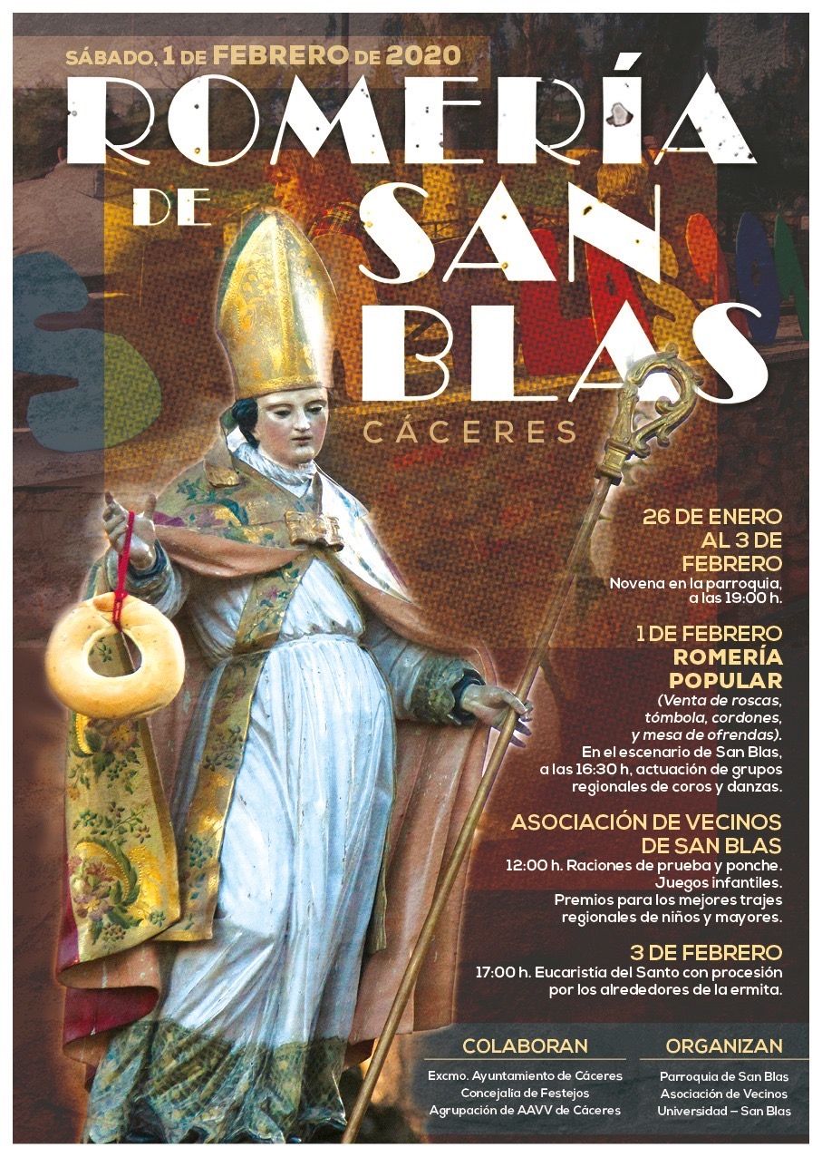 Esta fiesta es una de las más populares de Cáceres y se celebra al día siguiente de las Candelas, el 2 de febrero, día del cumpleaños de Rocha Pizarro, y una gran fiesta en su pueblo natal de Hinojal. Durante las fiestas se venden las roscas del santo, muy similares a las que se venden en abril en la fiesta hinojaliega de Santo Toribio. La ermita es la más antigua de la capital pues ya hay Ordenanza que datan del año 1561 y se considera que hubo otros edificios religiosos anteriores. Esta ermita fue erigida como parroquia por un decreto del obispo Manuel Llopis Ivorra el 8 de noviembre de 1958.