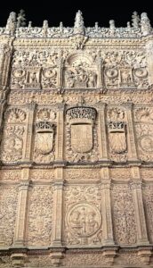 La Fachada de la Universidad del Patio de las Escuelas es la más espectacular de todas las fachadas de la Universidad de Salamanca y es considerada como el ejemplo más perfecto del plateresco español.
