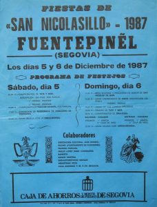 ¡Viva San Nicolasillo! Ya tenemos aquí el cartel (de 1987, eso sí) de nuestras tradicionales fiestas de invierno (aunque todos los años caen en otoño, pero el frío, allegado o no, siempre se da por invitado).