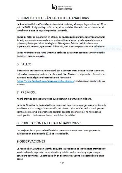 Para recordar que se ha convocado el concurso de fotografía de la Asociación Cultural San Mamés para el calendario de 2022. Las bases en https://www.facebook.com/acsanmamesfuentepinel/